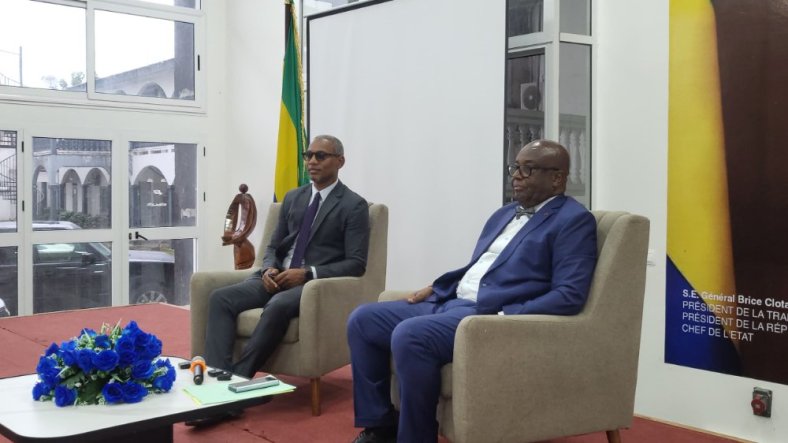 Le ministre des Sports, Paul Kessany, et le ministre de l’Intérieur, Adrien Nguema Mba au cours de leur conférence de presse ce lundi 13 avril 2026 Credit:© 2026 D.R./Le Radar